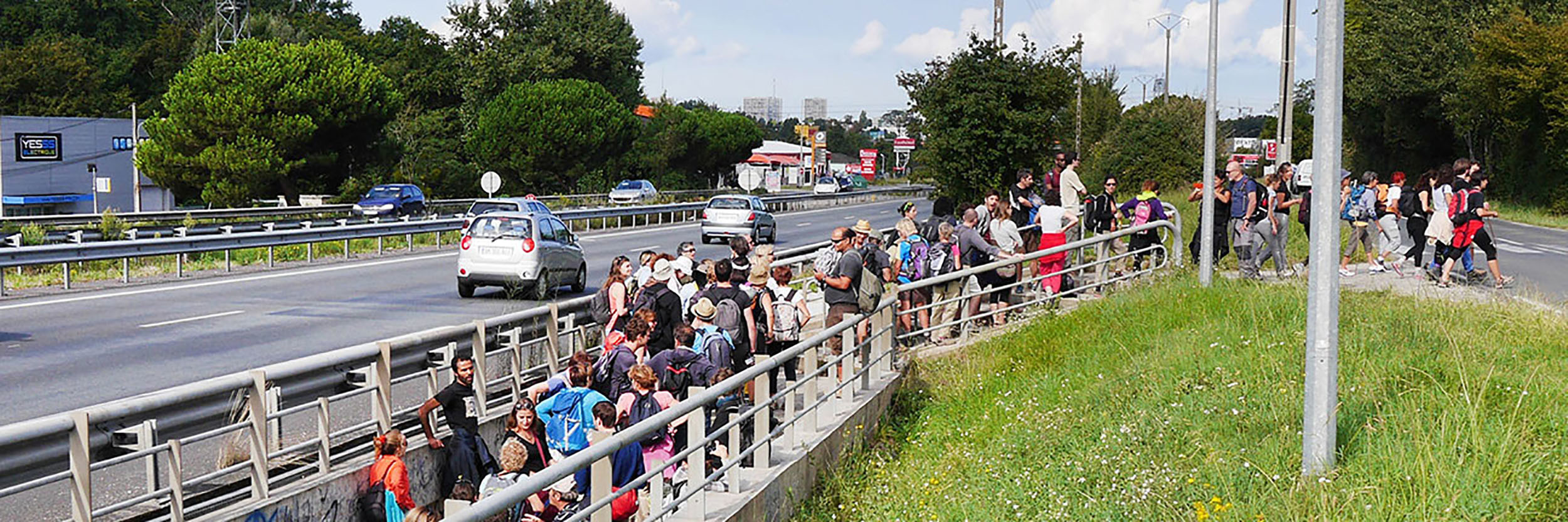 The collective suburban walks that we organise around Bordeaux bring together a large and eclectic public : families, students, walking clubs, seniors… The Suburban Shelters, which offer a unique immersive experience, are also very successful.