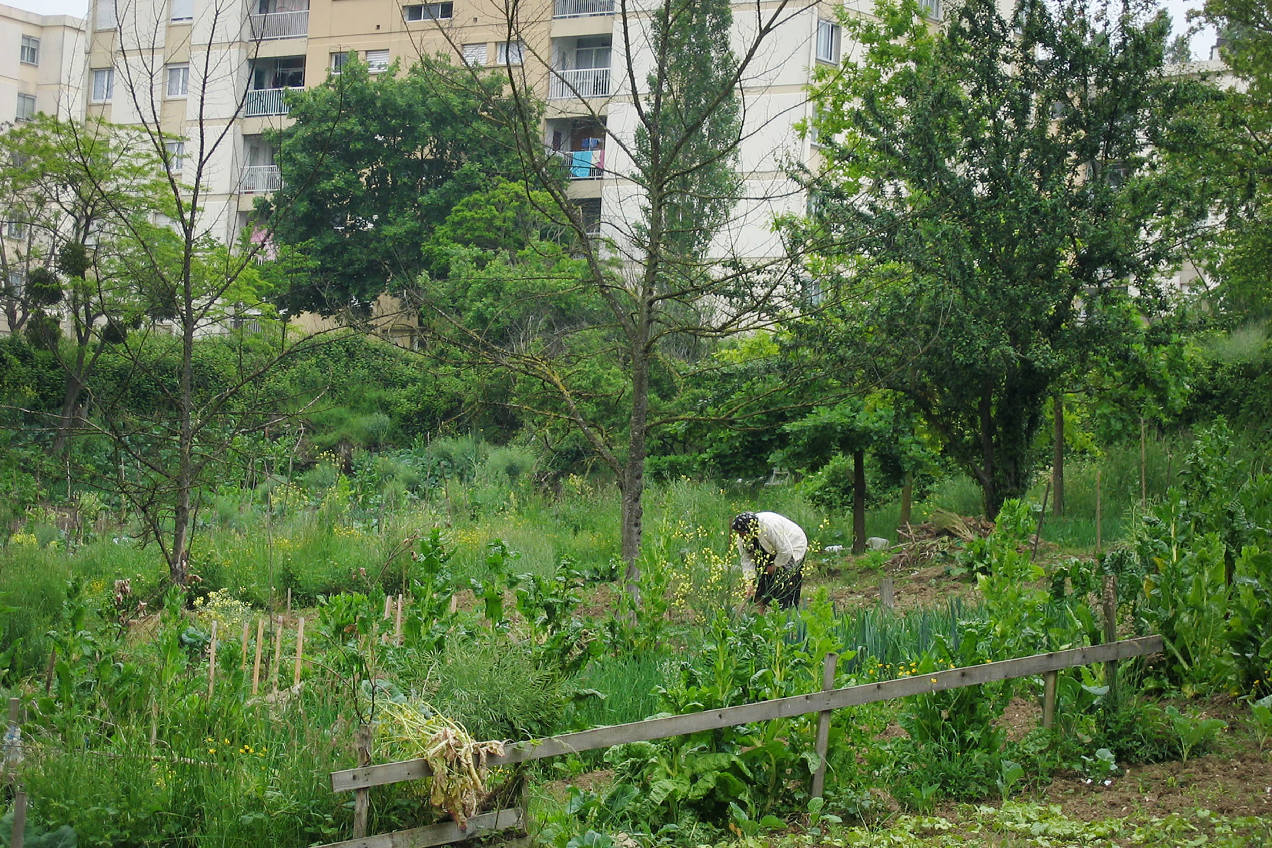 Quartier Carriet. Dans un méandre du parc des coteaux abrité des regards extérieurs, des familles turques habitant les 2 immeubles voisins ont défriché ce cirque pour créer un vaste potager avec culture en gradin et cabanons confortablement meublés… Ici, un modèle bien différent de celui des jardins familiaux habituels, plutôt une véritable entreprise agricole, entre subsistance et revente, dans laquelle la Mairie a fini par mettre de l’ordre. Aujourd’hui, c’est un jardin collectif ouvert à tous et géré par une association.