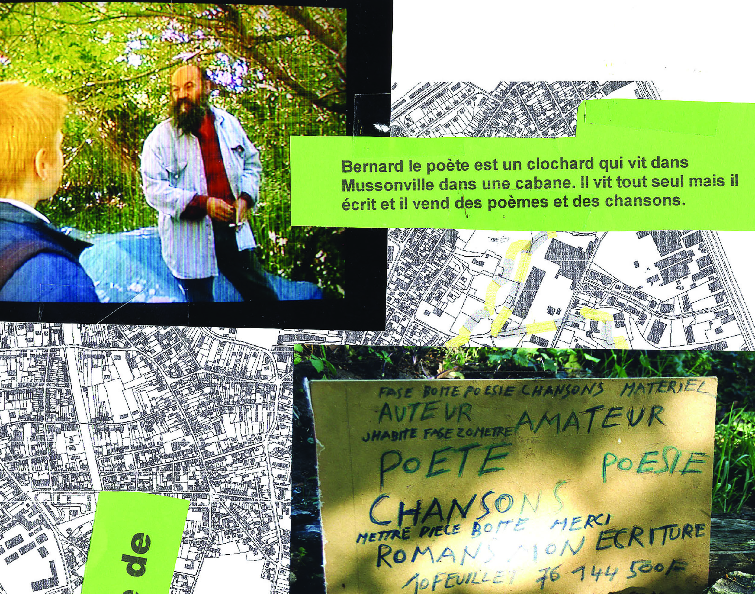Bernard Hugon habite les arrières du parc de Mussonville, en bordure de l’estey de Franc. Il vit là depuis environ 20 ans dans des abris de fortune ou dans des cavités qu’il creuse à même le sol. Il écrit des poèmes et des chansons qu’il tente de vendre (100 euros minimum !) auprès des promeneurs et joggeurs. Il roule ses écrits comme des parchemins et les installe au bord du chemin sur des présentoirs bricolés, qu’il reconstruit régulièrement.
